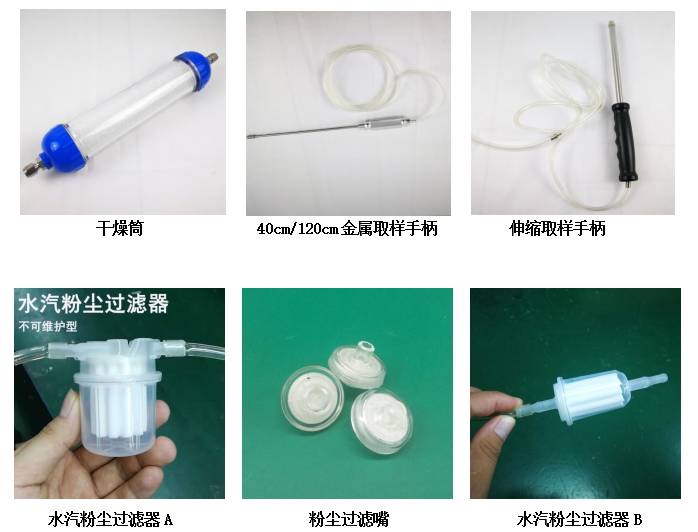 選配項:溫濕度測量功能、1.2 m 可伸縮采樣手柄(1-10米軟管,標準長度1米)、0.4米不銹鋼采樣手柄(帶粉塵過濾器,不可伸縮)、高溫采樣降溫過濾手柄、高溫高濕預處理系統(tǒng)、濕度粉塵過濾器多個、掛繩、光盤(上位機通訊軟件)