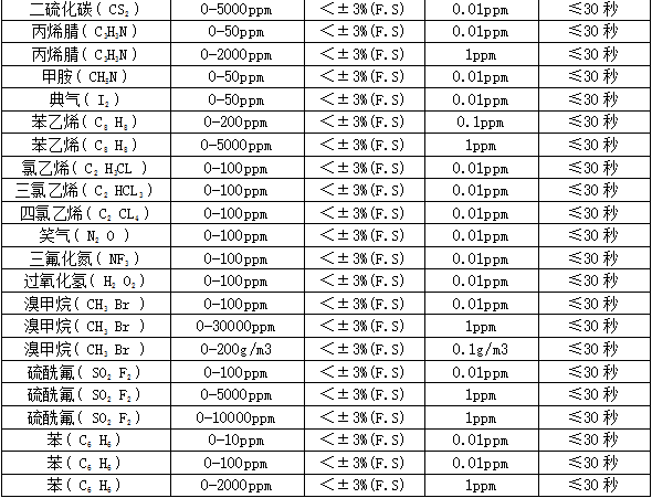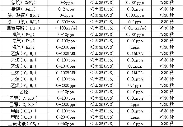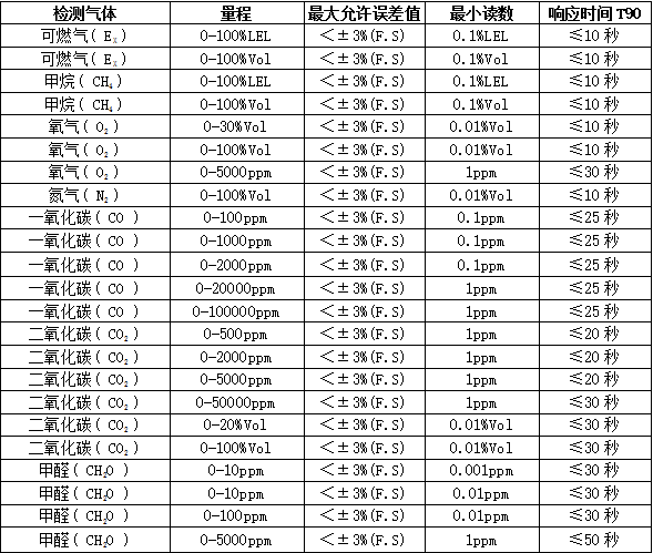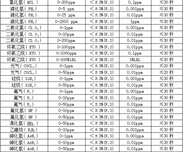 分 辨 率:0.01ppm或0.001ppm(0~10 ppm);0.01ppm(0~100 ppm),0.1ppm(0~1000 ppm),1ppm(0~1000 ppm以上),0.01毫克/升(0~200%毫克/升)、0.1%LEL、0.01%Vol、0.001%Vol。